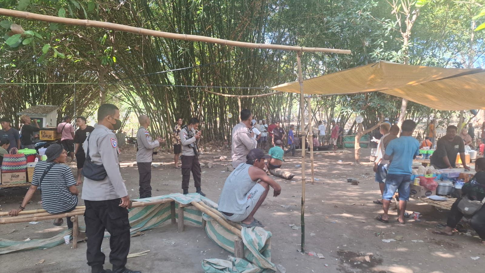 Menanggapi informasi tersebut, Kapolsek Plampang bersama anggota segera bergerak menuju TKP. Setibanya dilokasi, Kapolsek bersama anggota mendapatkan kerumunan warga yang sedang bermain judi sabung ayam dan langsung dibubarkan oleh petugas serta menghimbau kepada masyarakat agar tidak melanjutkan kegiatan sabung ayam tersebut karena menimbulkan kerawanan dan mengganggu ketertiban umum serta meresahkan didalam lingkup Desa khususnya di Desa Pemasar Kec. Maronge Kab. Sumbawa.