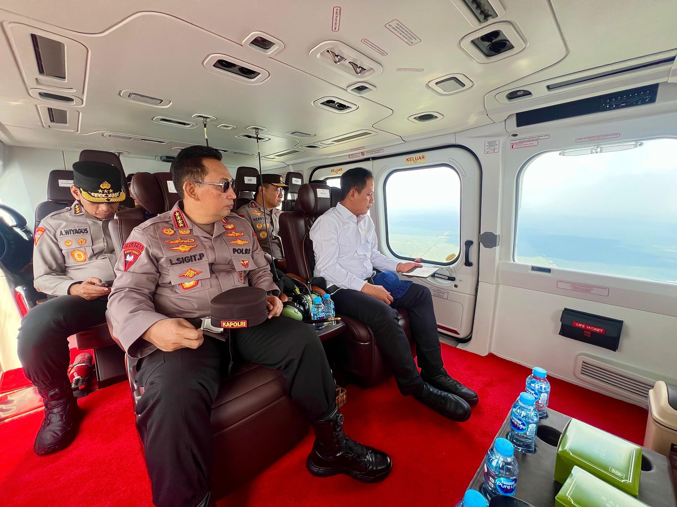 Riau. Kapolri Jenderal Polisi Drs. Listyo Sigit Prabowo melakukan peninjauan kesiapan penanganan karhutla di Riau. Peninjauan itu dilaksanakan dengan pemantauan titik api via udara dengan menggunakan helikopter.