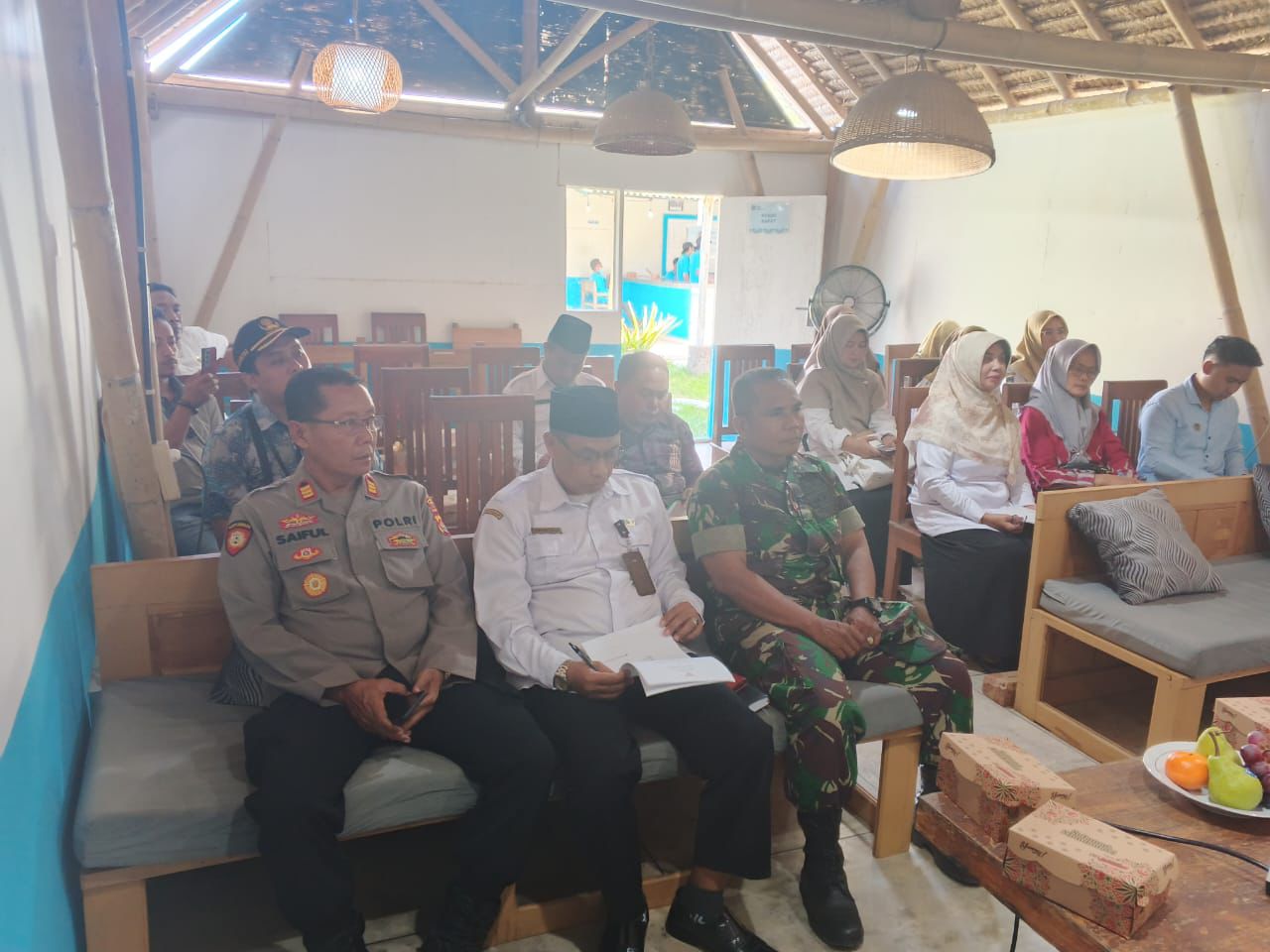 Hadir dalam kegiatan tersebut perwakilan dari Setda Kabupaten Sumbawa Barat, Dinas Kesehatan, Dinas Sosial, Dinas Perikanan, Kapolsek Taliwang AKP Saiful, Owner CV. JK Catering Sdri. Erna Sudirman, Bhabinkamtibmas dan Babinsa Kelurahan Menala, perwakilan dari 11 sekolah penerima manfaat MBG di Kecamatan Taliwang, serta tamu undangan lainnya.