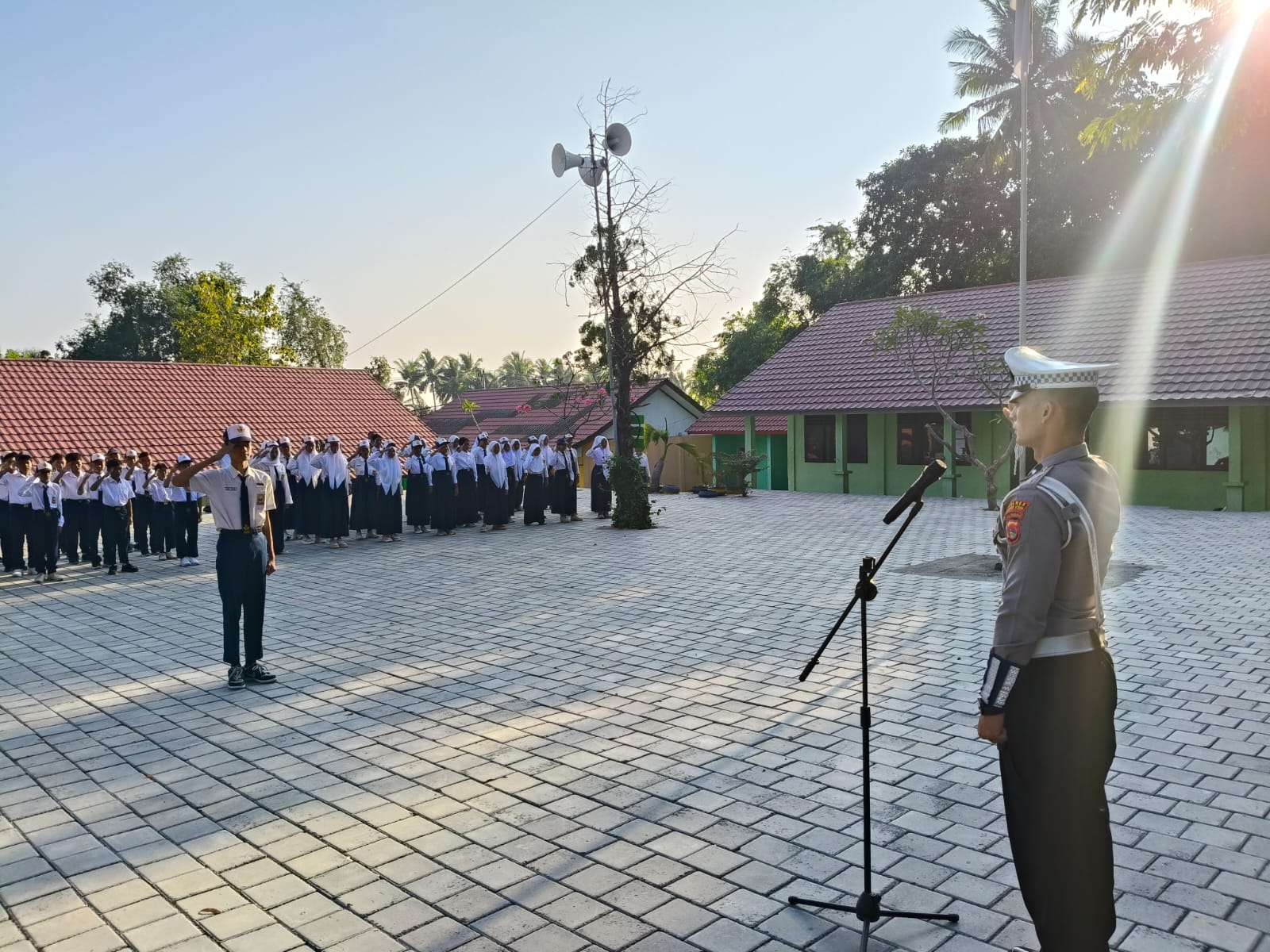 Lombok Utara – PS. Kanit Kamsel Satlantas Polres Lombok Utara bertindak sebagai pembina upacara di SMPN 1 Pemenang, Kecamatan Pemenang, Kabupaten Lombok Utara, pada Senin, 4/8/2025.