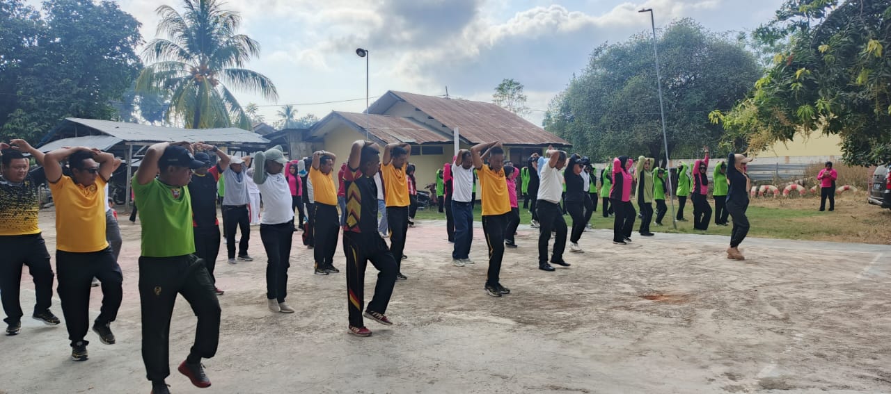 Bima, NTB (9 Agustus 2025) – Dalam rangka menyambut Hari Ulang Tahun (HUT) Kemerdekaan Republik Indonesia ke-80 Tahun 2025, Polsek Sape Polres Bima Kota menggelar kegiatan olahraga bersama masyarakat di Halaman Mako Polsek Sape, Sabtu (9/8/2025) pukul 08.00 WITA.