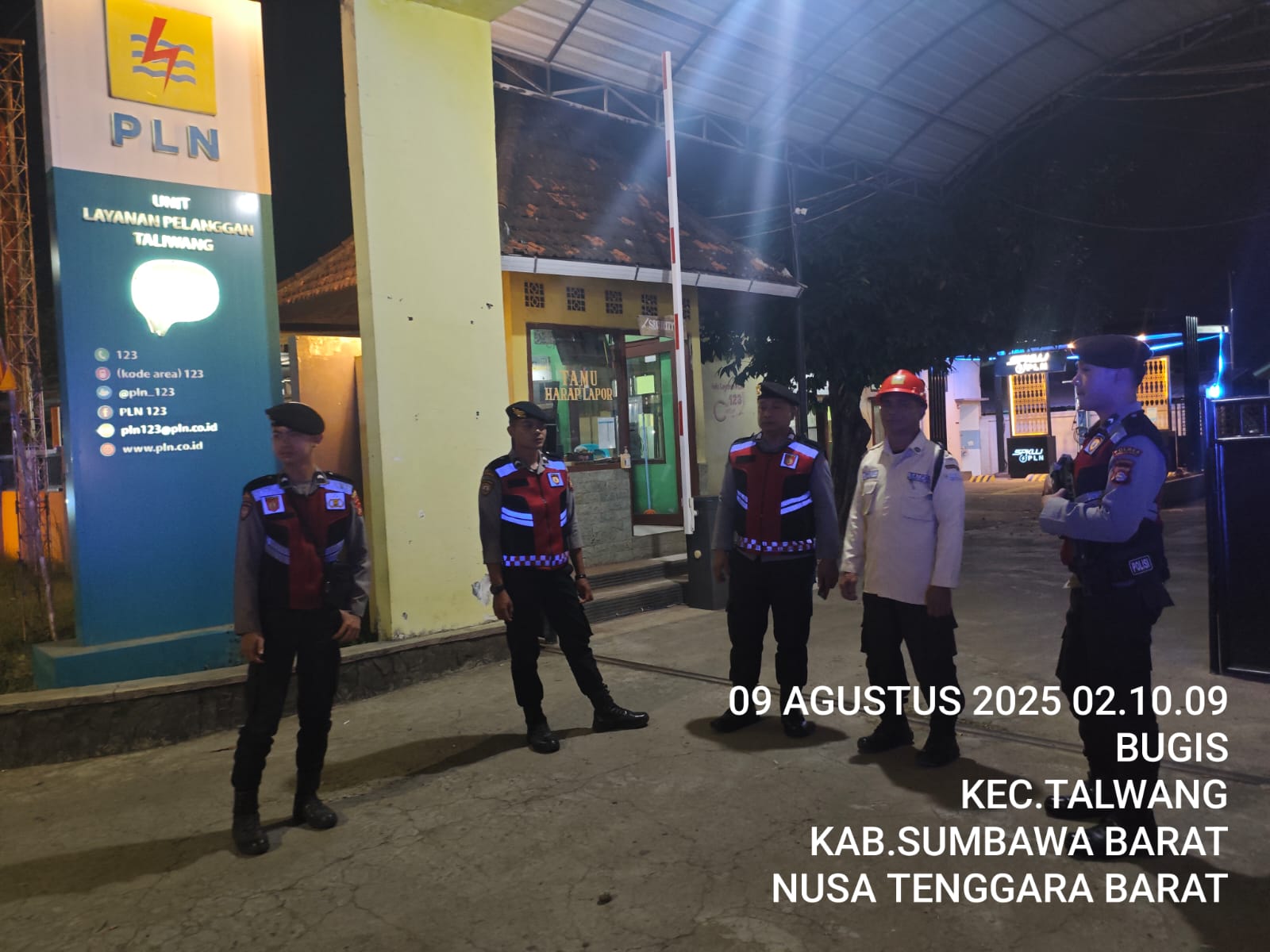 Sumbawa Barat, NTB – Dalam rangka menjaga keamanan dan ketertiban di wilayah hukum Polres Sumbawa Barat, Sat Samapta melaksanakan patroli objek vital (Obvit) di PT PLN Persero, Kecamatan Taliwang, pada Sabtu (9/8/2025) sekitar pukul 02.00 WITA.