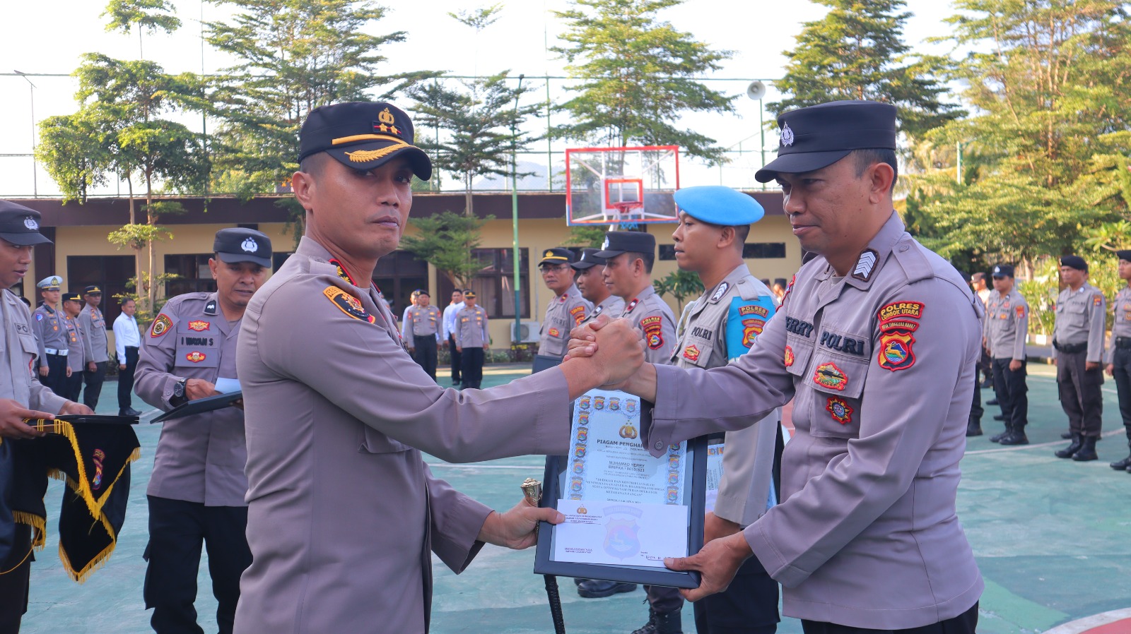 Dalam apel tersebut, Kapolres memberikan penghargaan kepada delapan personel yang di nilai berprestasi dalam pelaksanaan tugas.