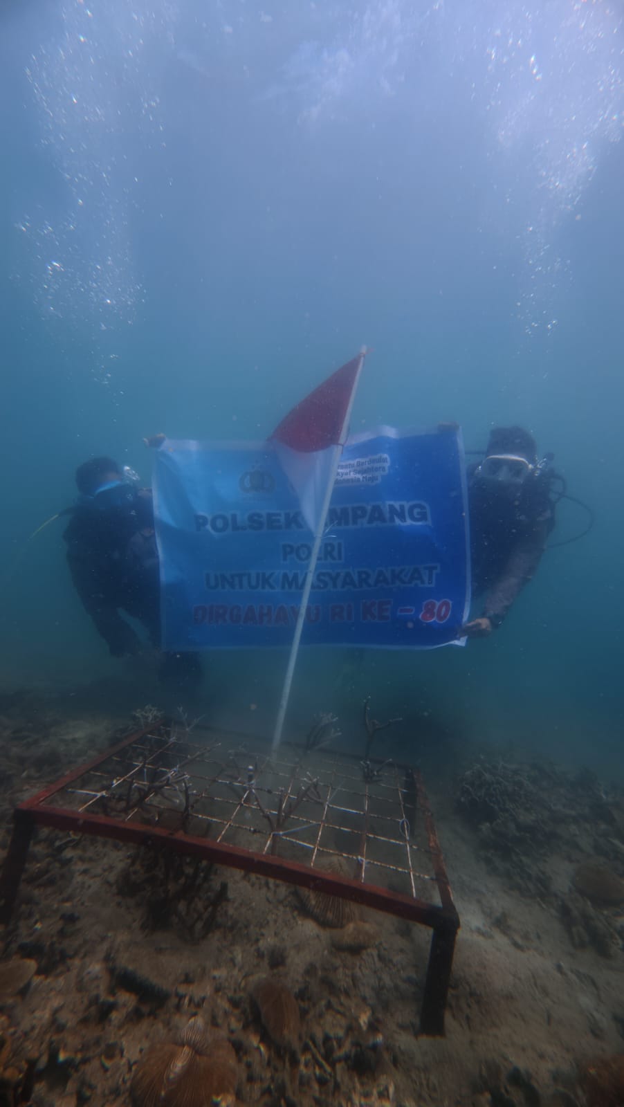 Setelah pengibaran bendera, para peserta melanjutkan kegiatan dengan transplantasi terumbu karang. Aksi ini adalah bentuk nyata kepedulian terhadap kelestarian lingkungan laut.