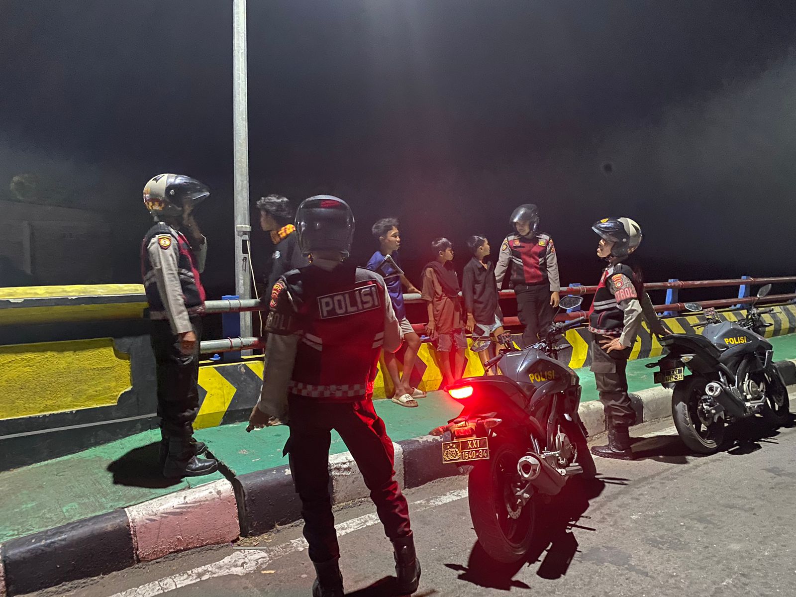 Patroli dipimpin langsung oleh Kanit Patmor Sat Samapta Polres Dompu, AIPTU Helmi, dengan titik fokus kegiatan di sekitar Jembatan Karijawa, Kecamatan Dompu.