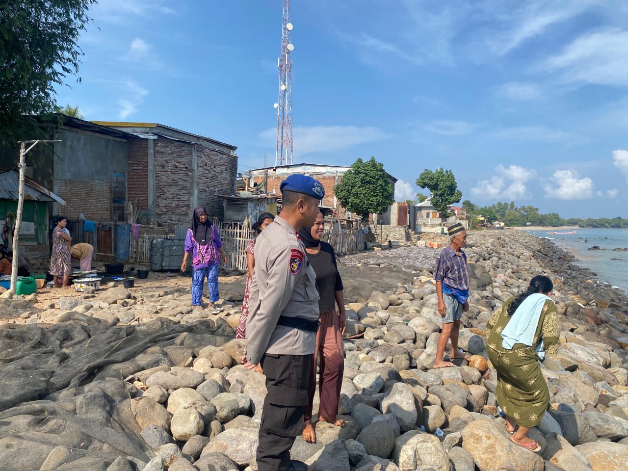Pada pukul 14.00 WITA, kegiatan dilanjutkan dengan Polmas Perairan oleh dua personel Sat Polairud dengan menyambangi masyarakat pesisir di Dusun Finis, Desa Hu’u. Petugas menyampaikan pesan-pesan kamtibmas kepada para pelele atau tengkulak ikan, seperti: Tidak menggunakan zat kimia berbahaya seperti formalin untuk mengawetkan ikan, Menjaga kebersihan lingkungan dengan tidak membuang limbah air bekas cuci ikan sembarangan dan Tidak membuang sampah ke laut guna menjaga kelestarian ekosistem laut.