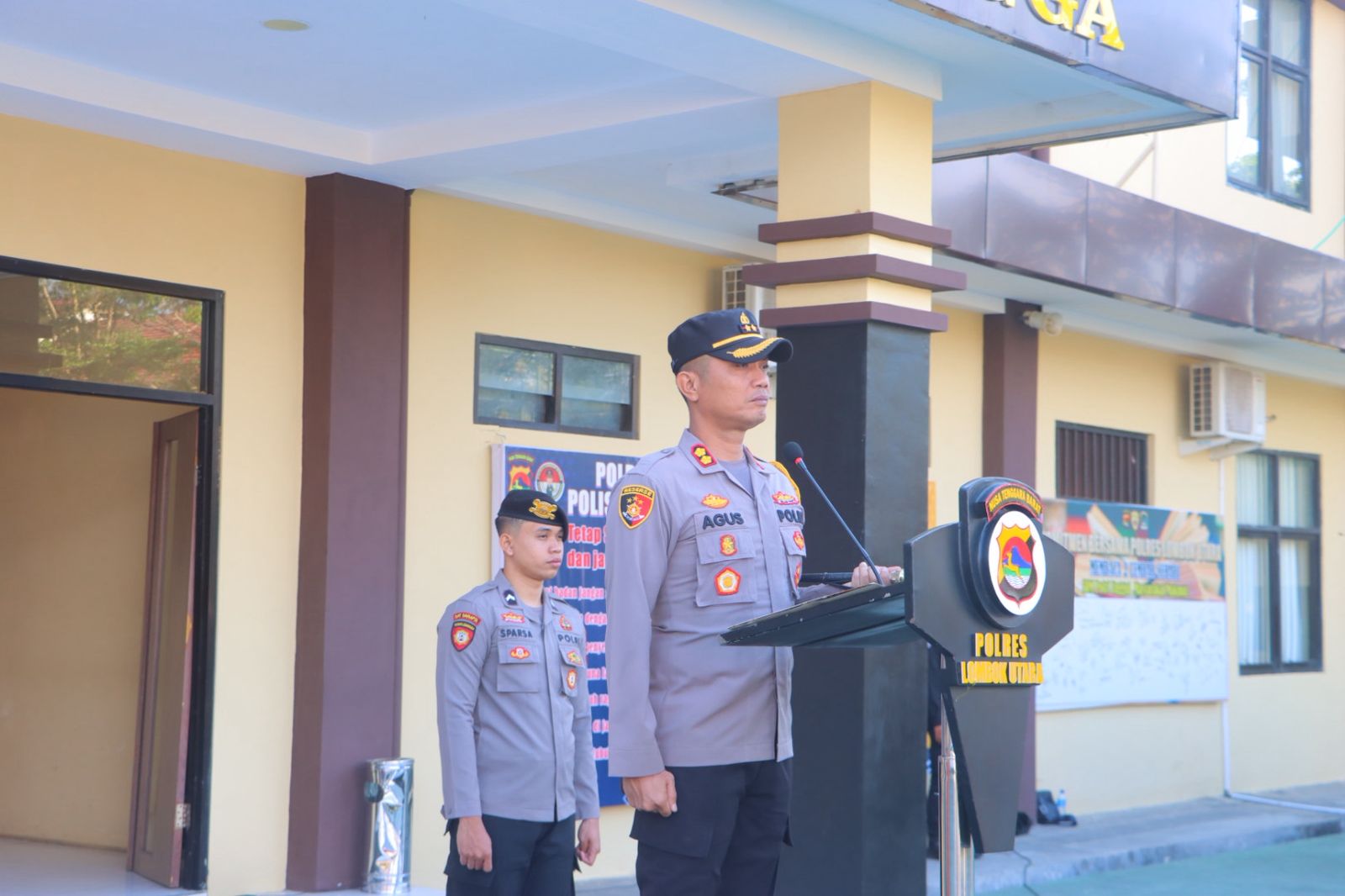 Lombok Utara – Kapolres Lombok Utara AKBP Agus Purwanta, S.I.K., memimpin pelaksanaan apel jam pimpinan yang diikuti oleh para PJU, Kapolsek jajaran, serta seluruh personel Polres Lombok Utara bertempat di lapangan apel Tatag Trawang Tungga Polres Lombok Utara, Senin, 8/9/2025.