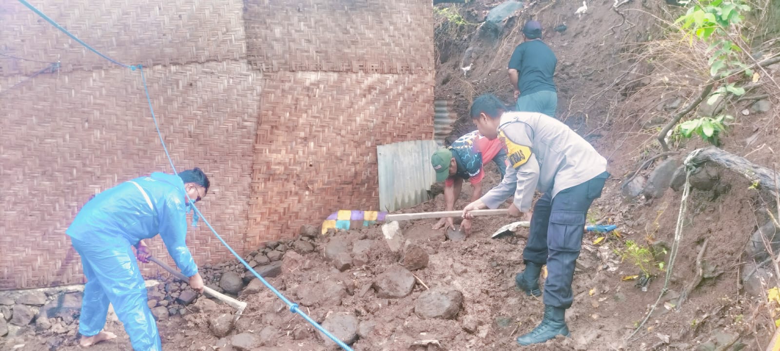 Kegiatan gotong royong dimulai pukul 07.00 Wita dengan sasaran rumah milik Ibu Margareta, yang terdampak material longsor akibat curah hujan tinggi pada dini hari sekitar pukul 03.00 Wita. Puluhan warga bahu-membahu membersihkan tanah, lumpur, dan batu yang menutupi rumah secara manual dengan menggunakan tenaga manusia.