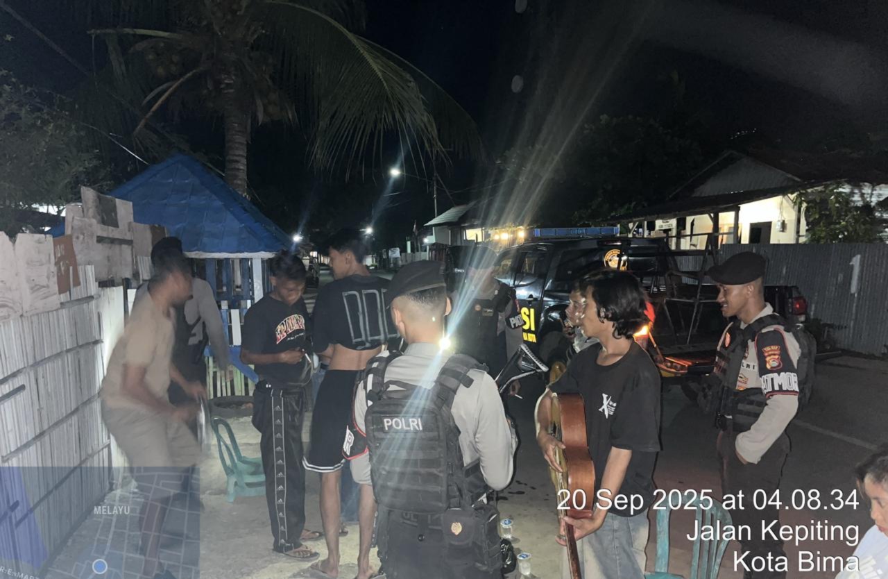 Pada Sabtu (20/9/2025) sekitar pukul 01.00 Wita, personel Unit Turjawali Sat Samapta Polres Bima Kota melaksanakan patroli di Kelurahan Matakando dan Kelurahan Penatoi, Kota Bima, sebagai langkah antisipasi tindak pidana dan potensi konflik sosial antar masyarakat.