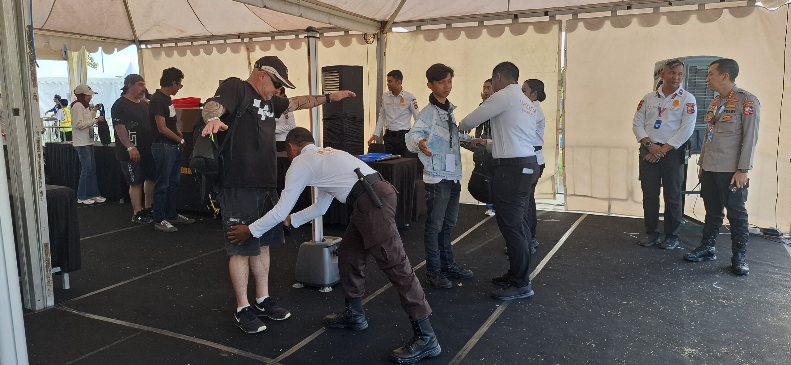 Mandalika— Kepolisian Daerah Nusa Tenggara Barat (Polda NTB), melalui jajaran Padal Pospam zona tengah Operasi Mandalika Rinjani 2025, Jumat (3/10/2025) mulai pukul 08.50 Wita, melaksanakan pemeriksaan orang dan barang di pintu masuk utama (Gate-1) Pertamina Mandalika International Circuit.