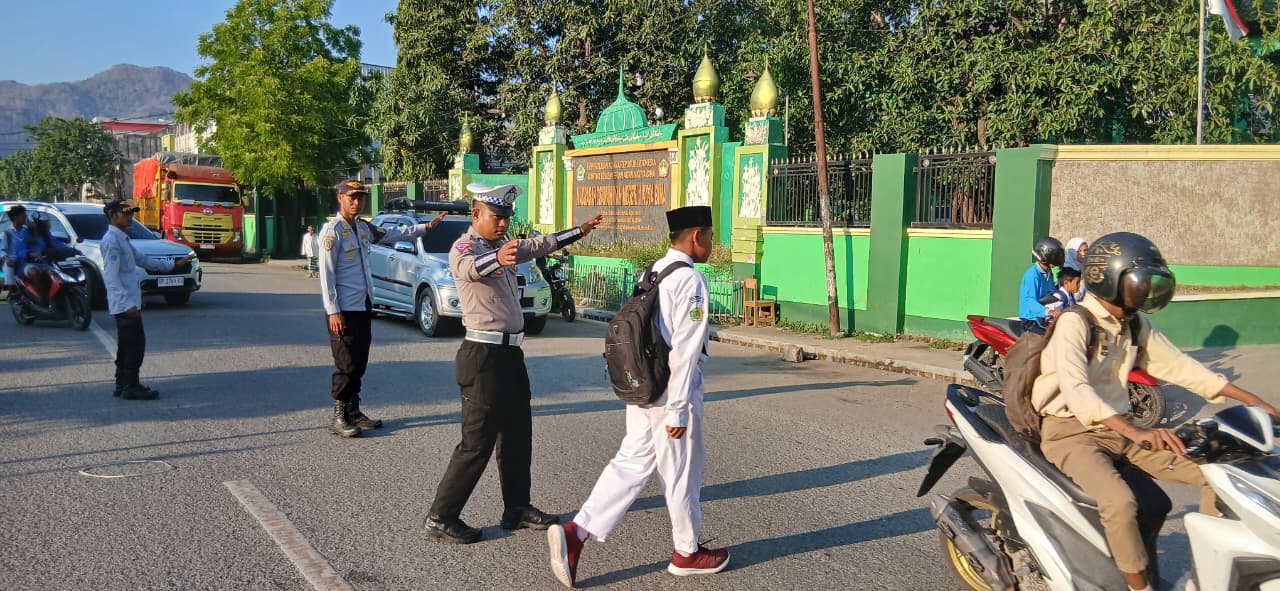 Selain melakukan pengaturan di titik rawan macet, personel juga memberikan pelayanan kepada masyarakat, membantu menyeberangkan anak sekolah, dan memastikan aktivitas masyarakat di pagi hari berlangsung aman serta tertib.