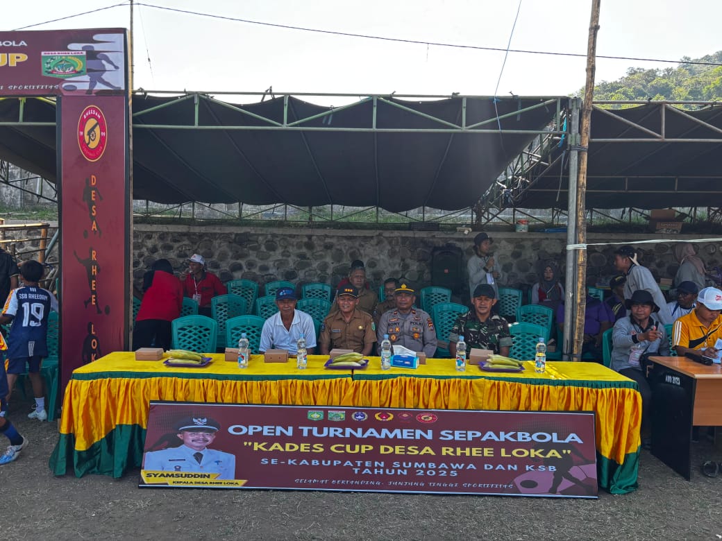 Sumbawa Besar, NTB — Sinergi antara Kepolisian, TNI, dan pemerintah daerah kembali ditunjukkan dalam mendukung kegiatan positif di tengah masyarakat. Kapolsek Rhee bersama Bhabinkamtibmas dan Danramil menghadiri dan mengamankan kegiatan Pembukaan Turnamen Sepak Bola Kades Cup 2025 yang diselenggarakan di Lapangan Sepak Bola Desa Rhee Loka, Kecamatan Rhee, pada Senin, 6 Oktober 2025, sekitar pukul 15.20 WITA.