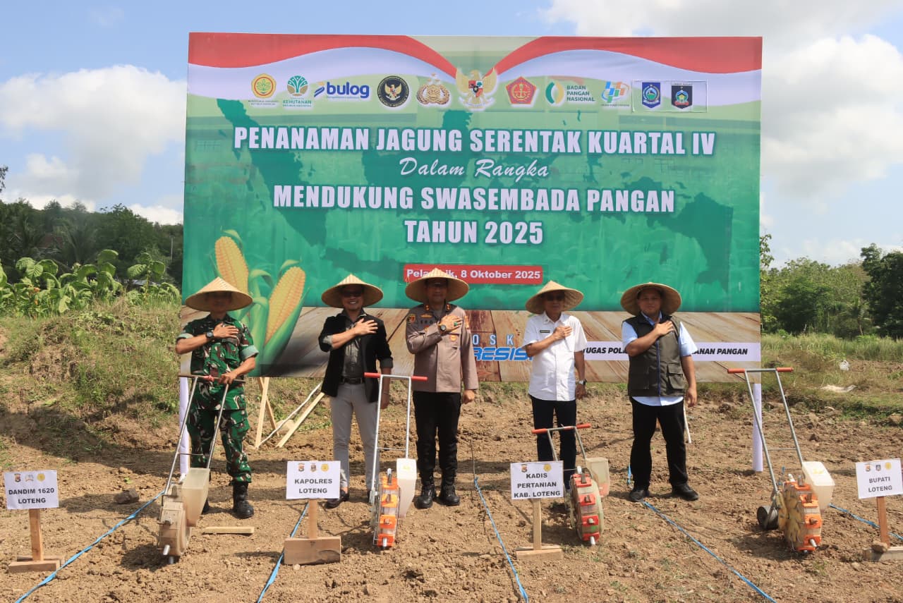 Lombok Tengah, (NTB) – Dalam rangka mendukung Swasembada Pangan Nasional, Polres Lombok Tengah melaksanakan tanam jagung serentak kuartal IV di Desa Pelambek Kecamatan Prabarda, Rabu (8/10).