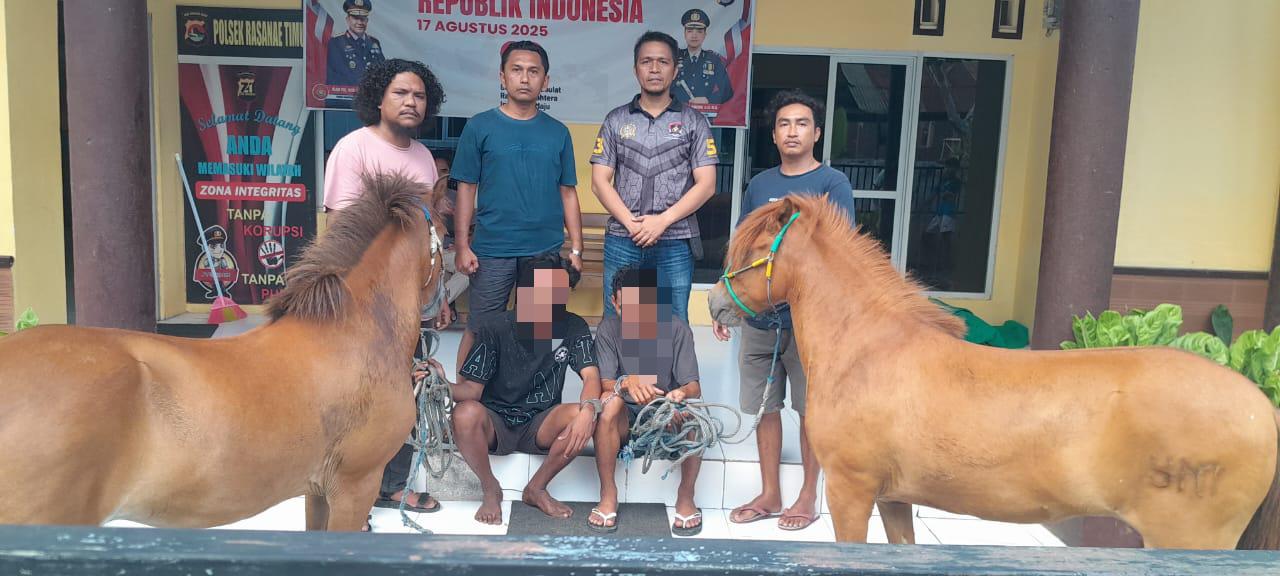Misteri Hilangnya Sepasang Kuda Terungkap, Dua Pria Pencurinya Sukses Dibekuk Tim Opsnal Polsek Rastim