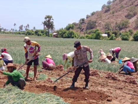 Bhabinkamtibmas Polres Bima Kota Bantu Warga Binaan Panen Bawang Sambil Sampaikan Imbauan Kamtibmas