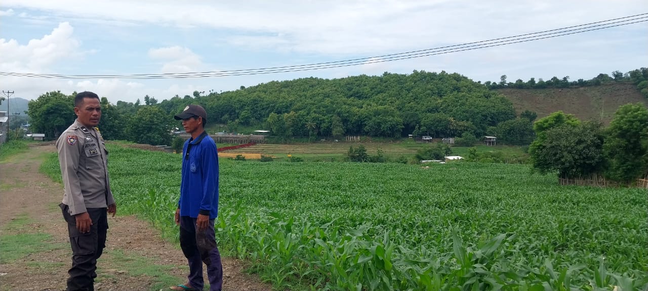 BHABINKAMTIBMAS DESA MANGGENAE LAKUKAN PEMANTAUAN LAHAN JAGUNG UNTUK DUKUNG KETAHANAN PANGAN WILAYAH