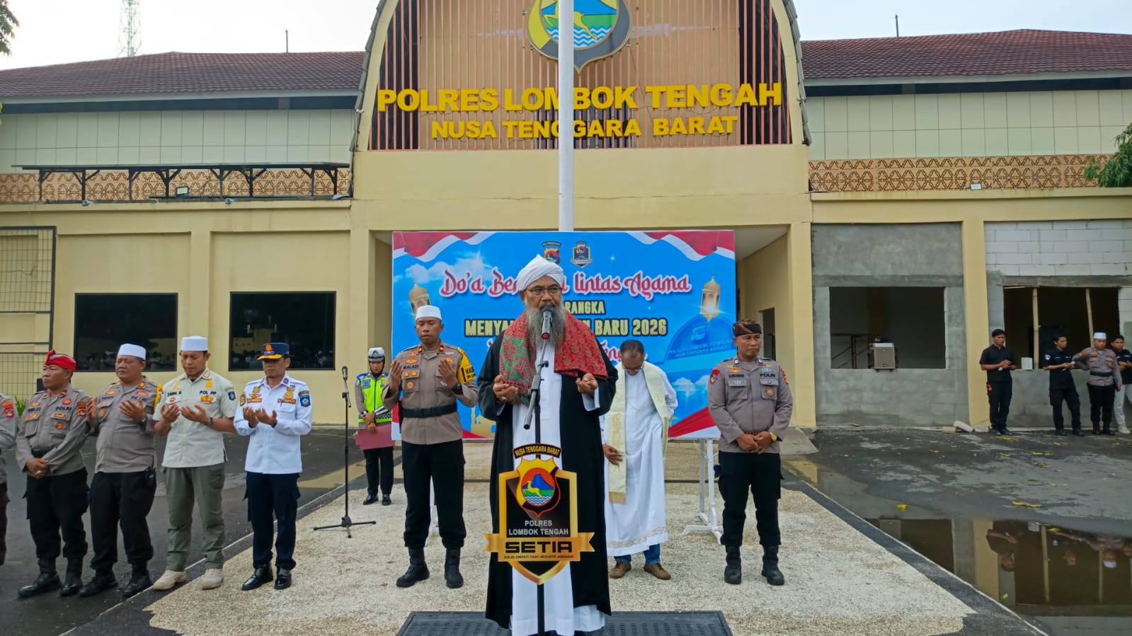 Kapolres Lombok Tengah, AKBP Eko Yusmiarto, S.I.K., melalui Kasi Humas IPTU L. Brata Kusnadi dalam keterangannya menyampaikan bahwa kegiatan doa bersama lintas agama ini merupakan simbol kuatnya toleransi, kebersamaan, dan persatuan di Kabupaten Lombok Tengah.