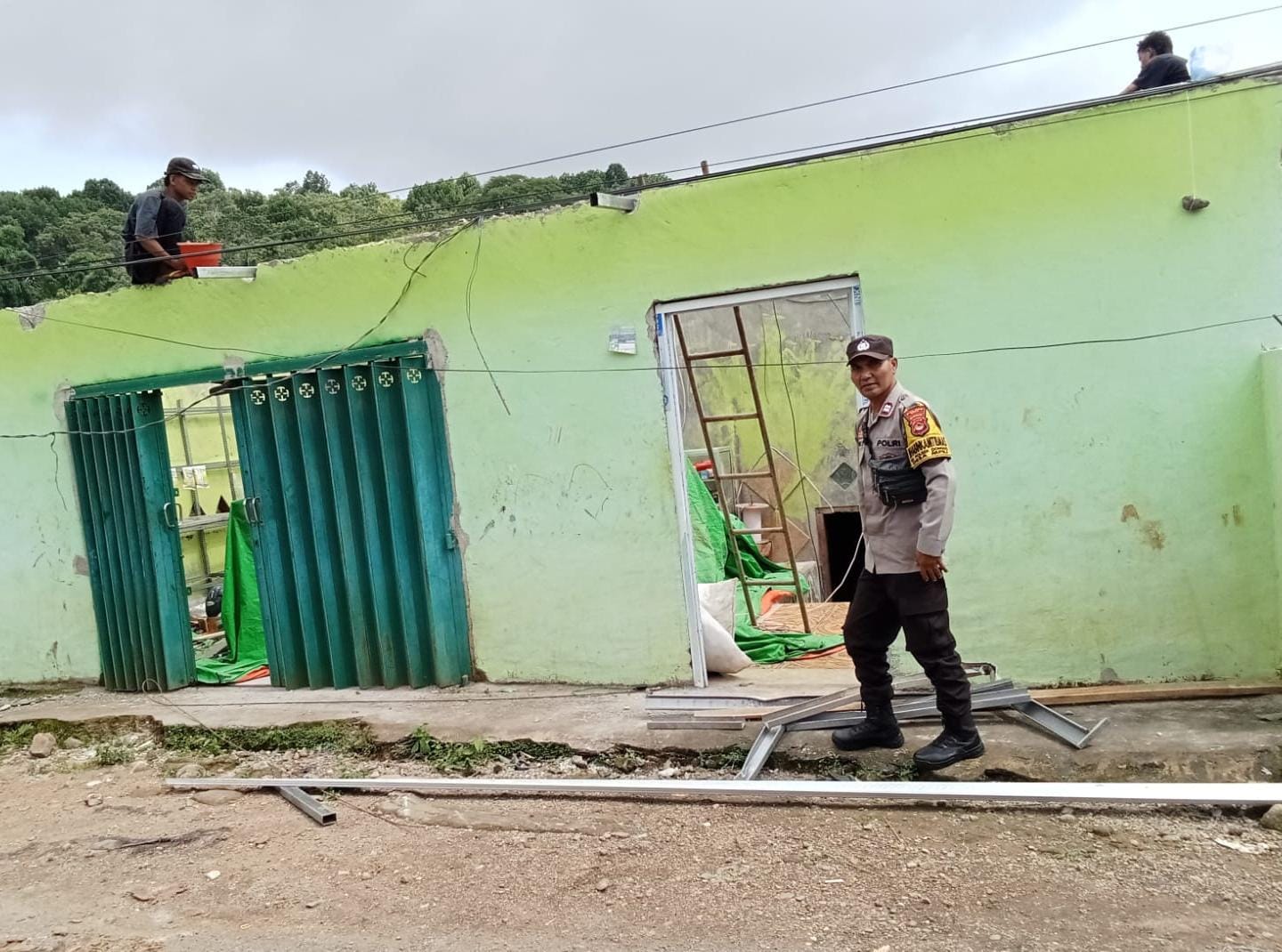 Untuk itu Personel Polsek Donggo Polres Bima Polda NTB dikerahkan untuk membantu warga yang terdampak bencana angin kencang tersebut.