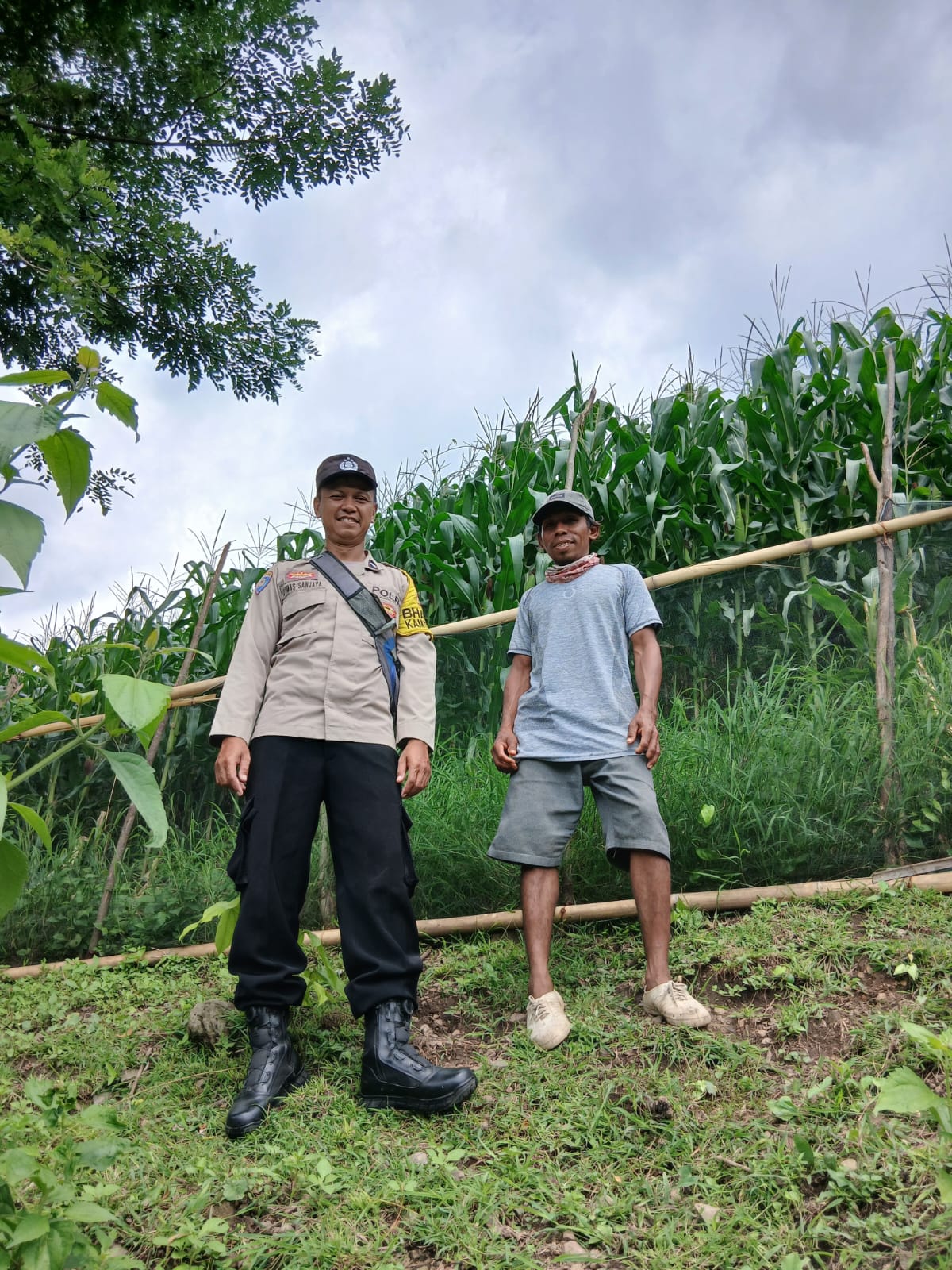 Dalam rangka mendukung Program Ketahanan Pangan Nasional Menuju Indonesia Emas 2045, Bhabinkamtibmas Polsek Kilo melaksanakan kegiatan pemantauan lahan pertanian jagung milik warga binaan di wilayah Kecamatan Kilo, Kabupaten Dompu.