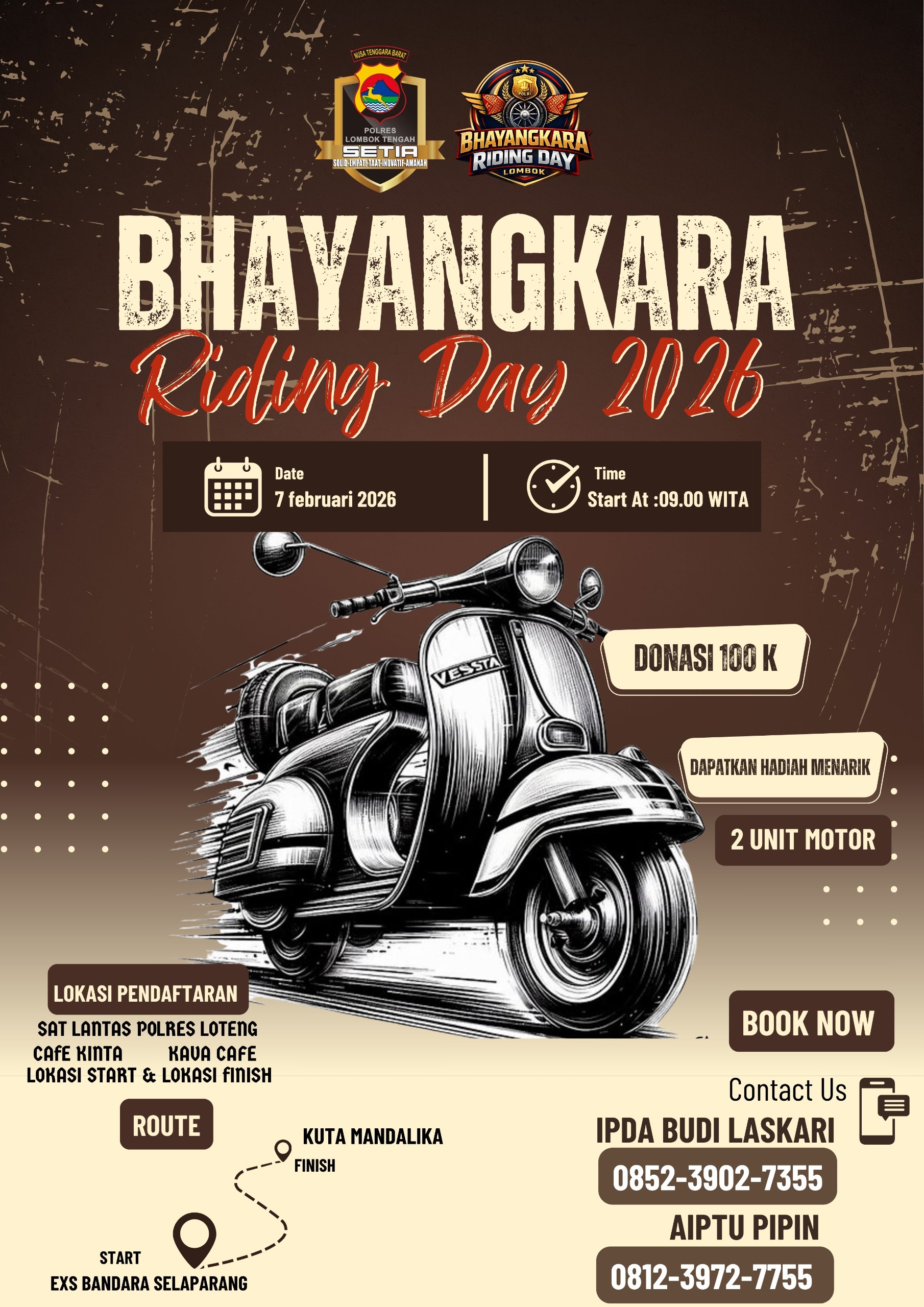 Polres Lombok Tengah mengajak seluruh elemen masyarakat untuk ikut meramaikan dan menyukseskan Bhayangkara Riding Day 2026, sebagai bentuk dukungan terhadap budaya, kemanusiaan, serta pariwisata di Kabupaten Lombok Tengah.