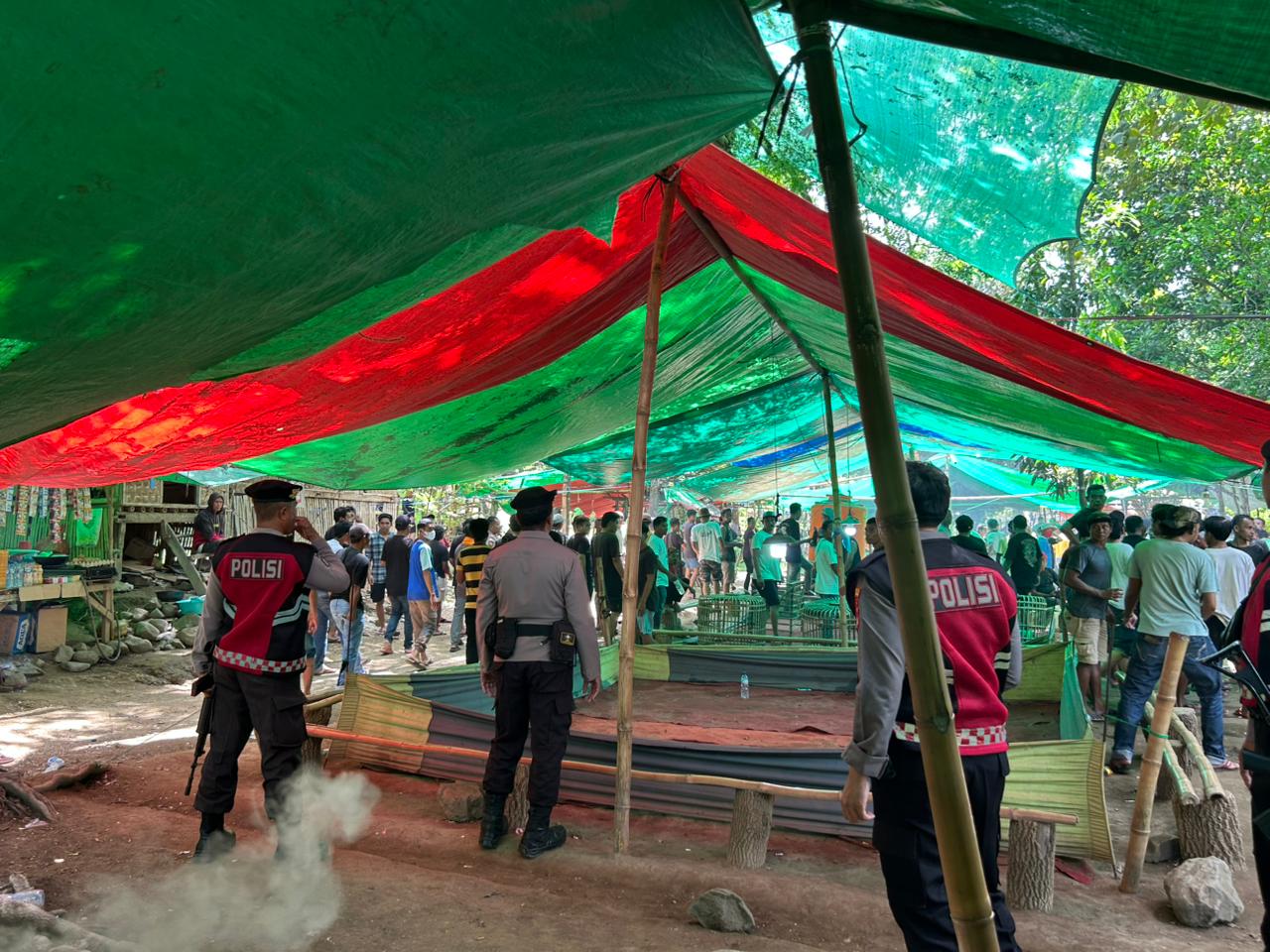 Selanjutnya pada pukul 13.00 Wita, petugas kembali membubarkan kegiatan sabung ayam di Lingkungan Lewi Jambu, Kelurahan Melayu, Kecamatan Asakota.