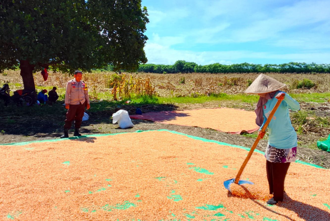 Dalam pelaksanaannya, AIPTU Firdaus melakukan pemantauan terhadap proses penjemuran jagung guna memastikan kualitas hasil panen tetap terjaga. Selain itu, Bhabinkamtibmas juga memberikan motivasi dan semangat kepada petani agar terus meningkatkan produktivitas pertanian sebagai bagian dari upaya mewujudkan ketahanan pangan yang kuat.