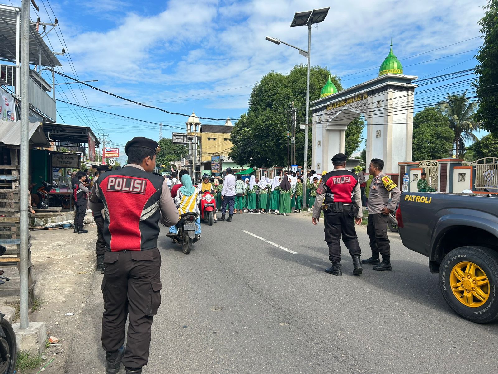 Kegiatan tersebut dipimpin langsung oleh Kanit Patmor AIPTU Arafik bersama anggota, dengan sasaran patroli di sejumlah titik keramaian seperti pertokoan, pangkalan ojek, serta pengaturan dan pengawalan kegiatan pawai siswa SD IT Alhilmi di wilayah Masjid Baiturahman.
