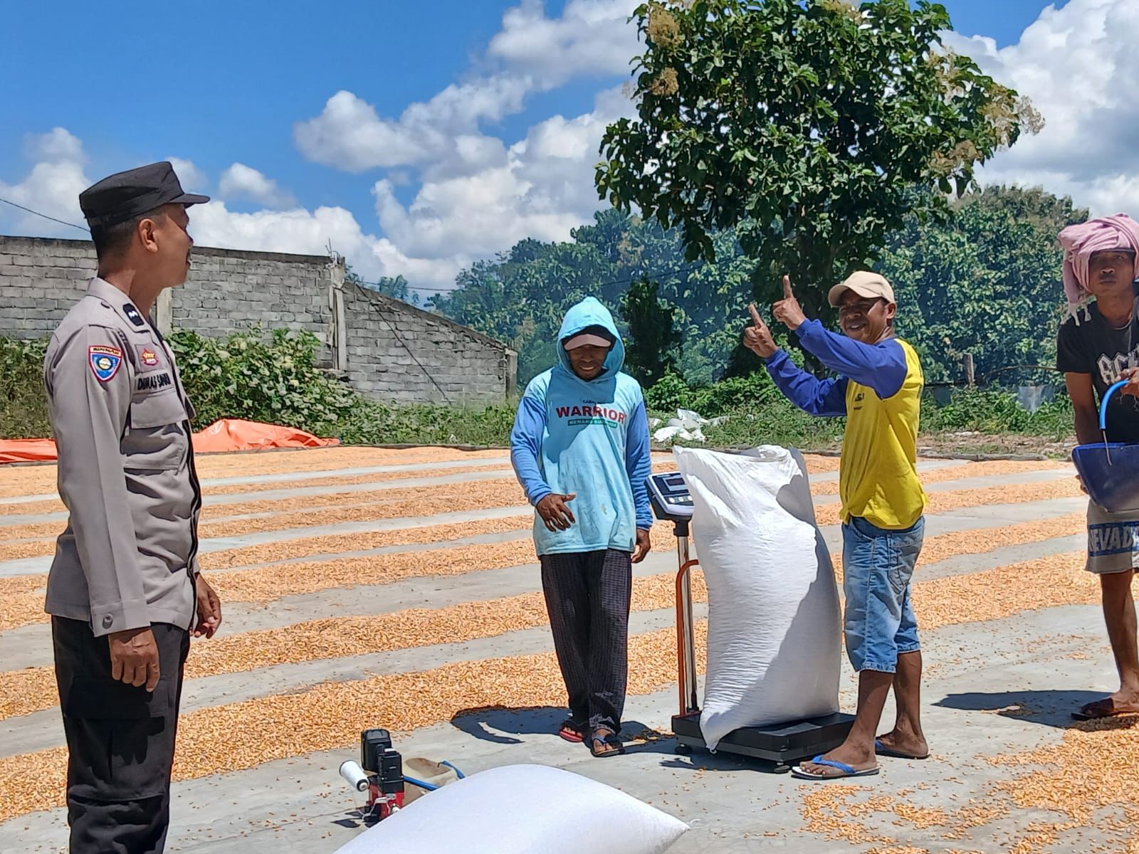 Bhabinkamtibmas Desa Mbuju Pantau Penjemuran Jagung, Dukung Ketahanan Pangan Nasional